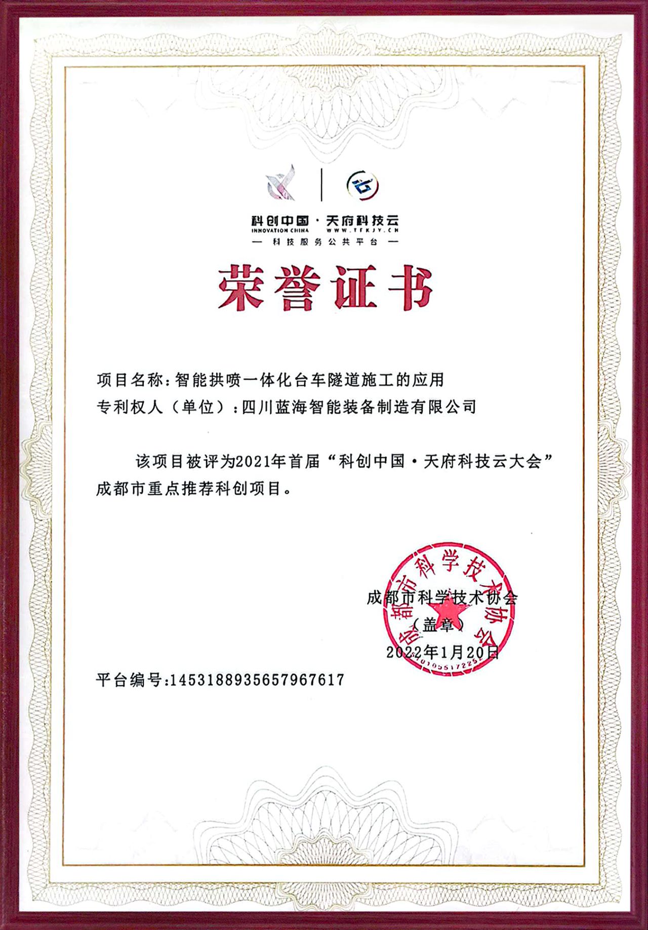 四川藍海智能裝備制造有限公司一直致力于地下工程及礦山成套智能裝備的研發、生產和銷售,現已成為國內先進的成套智能裝備集成商。先后通過高新技術企業、專精特新“小巨人”企業、國家知識產權優勢企業、四川省企業技術中心、成都市院士(專家)創新工作站等認證。公司秉持質量為本的理念,先后通過了ISO9001質量管理體系認證、ISO14001環境管理體系認證、ISO45001 職業健康安全管理體系認證。
